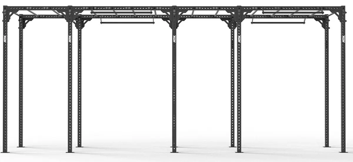 Das ATX® RIG Ladder 2 ist komplett freistehend und bietet mit seinen allseitig gelochten ATX® BASIS FRAMES plus massiver Verschraubungen maximale Stabilität. Eine Verschraubung am Boden ist erforderlich. Die hochwertige Stahlkonstruktion mit pulverbeschichteter Oberfläche garantiert eine lange Lebensdauer – auch bei intensiver Nutzung.