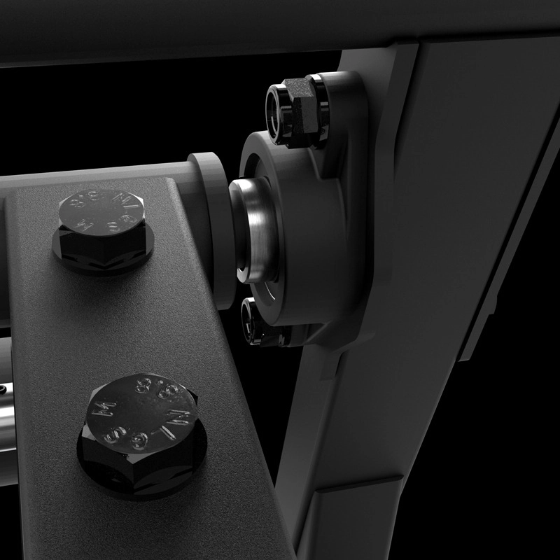 | GROßES FUßBLECH MIT STAND-POSITIONSMARKIERUNGEN | DOPPELSEITIGE FLANSCHLAGERUNG | 3 EINSTELLBARE STARTHÖHEN |