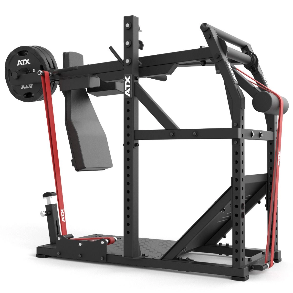 Die Pendulum Squat ist eine spezielle Kniebeugemaschine mit langer Tradition. Von vielen erfahrenen Athleten wird diese Art der Kniebeugemaschine als eines der effektivsten Geräte zur Entwicklung des Quadrizeps bezeichnet. Wichtig bei diesem Gerät ist vor allem eine exakte Winkelung von Fußblech zu Rückenlehne und ein optimal ausgelegter Hebelarm, um eine erstklassige Funktion mit besten Wirkungsgrad zu erzielen. Mit der beidseitigen Roller-Band-Peg Vorrichtung lässt sie der Kraftkurvenverlauf perfekt feinjustieren. ATX® hat hier mit zahlreichen Athletinnen und Athleten, fundamentalen Referenzwerten und dem erfahrenen Technikerteam eine extrem hochwertige Pedulum Squat entwickelt, das in diesem Preis-/Leistungssegment wohl unerreicht sein dürfte.
