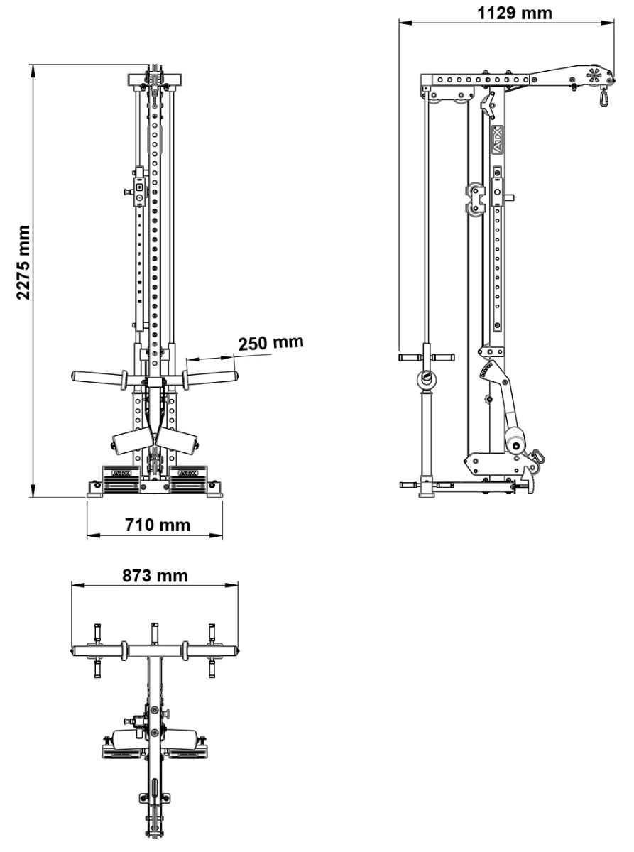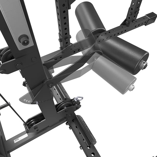 MERKMALE seidenweiche ruckfreie Laufeigenschaft + Schlitten mit Gleitbuchsenführung + kugelgelagerte Seilrollen + dehnungsfreies Stahlseil mit Schutzummantelung + Führungswellen aus Vollstahl Gewichtsübersetzung 1:1 untere und obere Zugfunktion Kugelgekagerte doppelläufige Seilrollen bei der unteren und oberen Seilaufhängung gewähren ein einwandfreies Abgleiten des Seiles und minimieren somit den Abrieb oder die Beschädigung des Zugseiles extra hohes Streckmaß - bis zu 200 cm Körpergröße geignet Mit innovativer Seillängenjustierung - ermöglicht das Einstellen der optimalen Start/-Griffhöhe, des optimalen Streckmaßes und des Zughubes für alle Körpergrößen von 155 cm bis 200 cm individuell höhenverstellbare und abklappbare Beinstütze - für eine sichere Fixierung bei schweren Zugübungen von Oben + Polsterrollen aus hochwertigen Urethan - hygienefreundlich und abriebfest + schnell und einfach in der Höhe zu verstellen mit Federrastbolzen mit großen stabilen Fußstützen mit rutschsicherer Oberflächenstruktur - für ein sicheres Abstützen bei schweren Ruder-Zugübungen Schwer belastbar - bis 150 kg Mit Roller Band Pegs, zum Anbringen von Widerstandsbändern - für eine zusätlich erhöhte dynamische Belastung Hantelscheibenaufnahmen Ø 50 mm - verchromt angeschrägte Hantelscheibenaufnahmen - verhindern das herabfallen der Scheiben beim Training und ermöglichen das Training ohne Verschlüsse, was das Handling optimiert und die Sicherheit erhöht aus 70 x 70 x 3 mm starken Quadratstahlrohr mit gelasertem Lochmuster und 5 - 8 mm starken gelaserten Formstahlplatten mit gummierten Standfüßen - bodenschonend und rutschsicher professionelle Zugstation in erstklassiger Verarbeitung mit unverkennbarer ATX® - DNA mit Studiozulassung - Zertifiziert EN 20957 I.II.IV - S (Studio)
