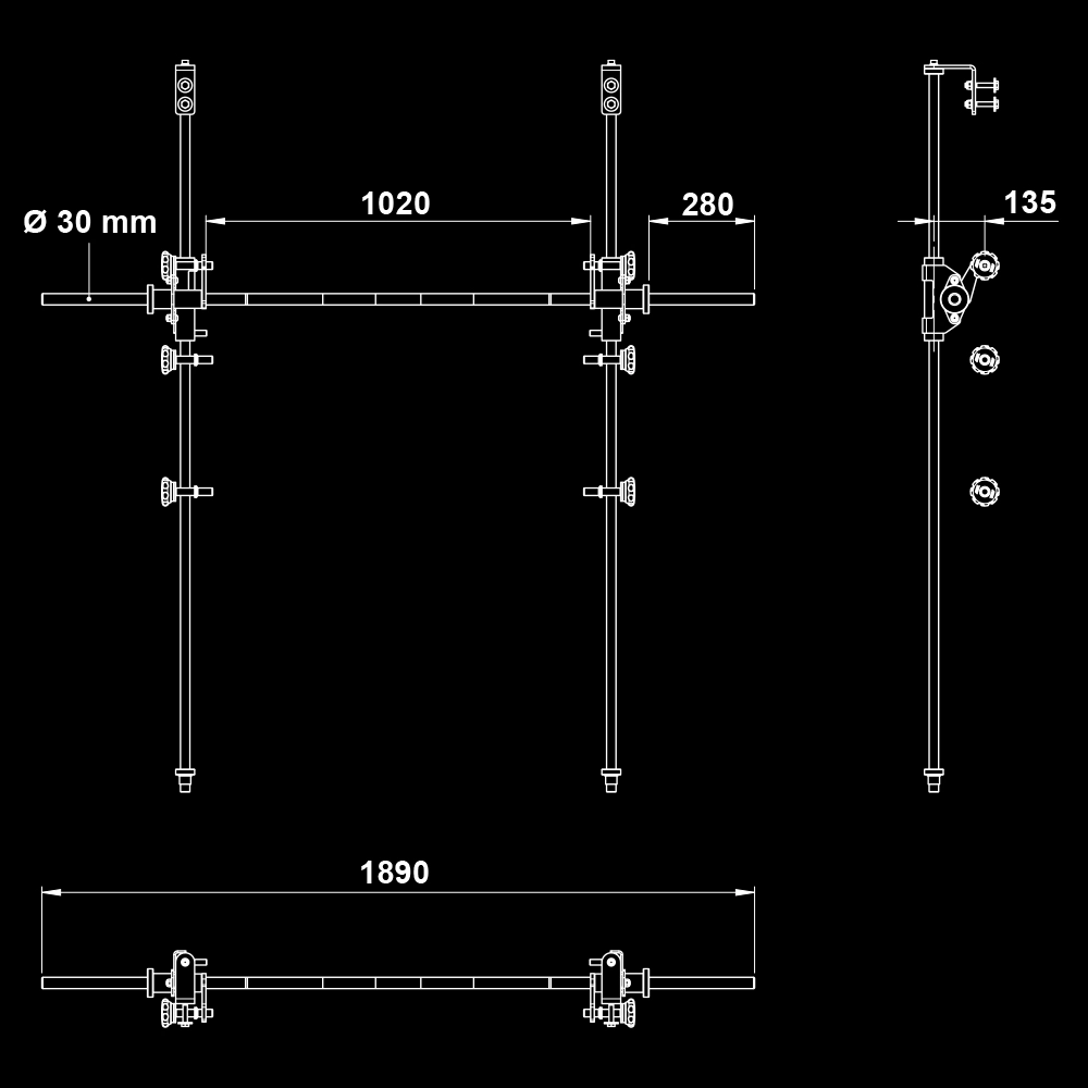 mit 6 Arretierbolzen / Ablagebolzen aus Vollstahl Ø 20 mm