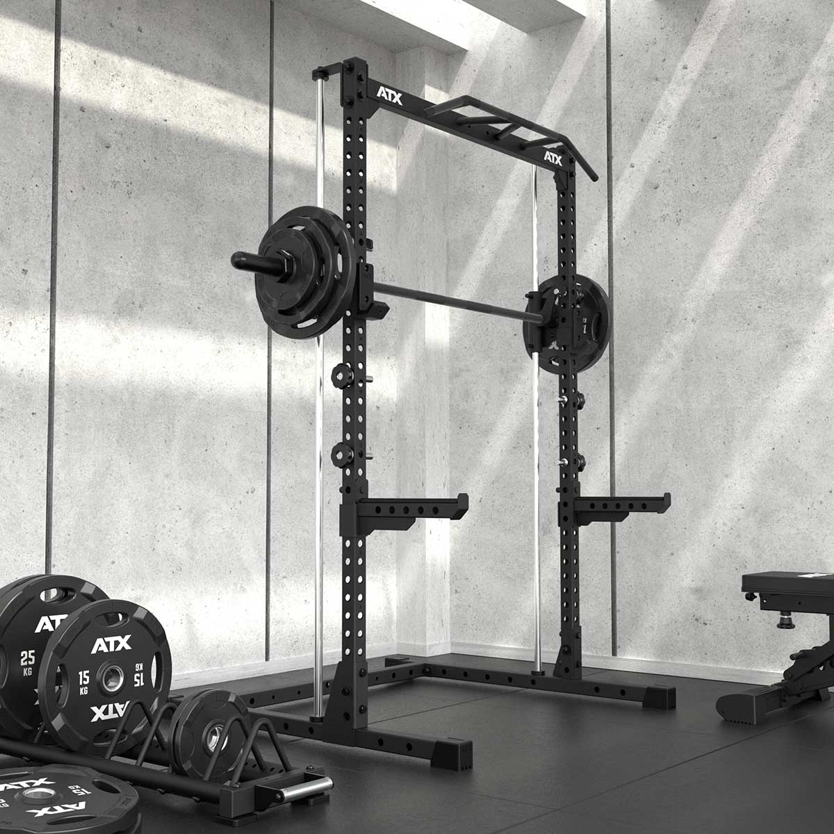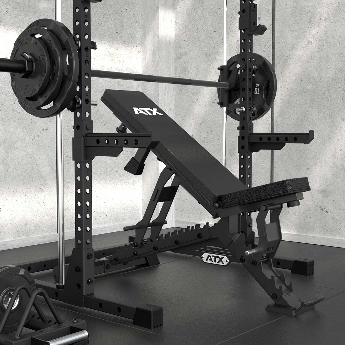 Das auf den Abbildungen beispielhaft gezeigte Zubehör wie Rack, Hantelbank, Hantelscheiben etc. gehören nicht zum Lieferumfang.