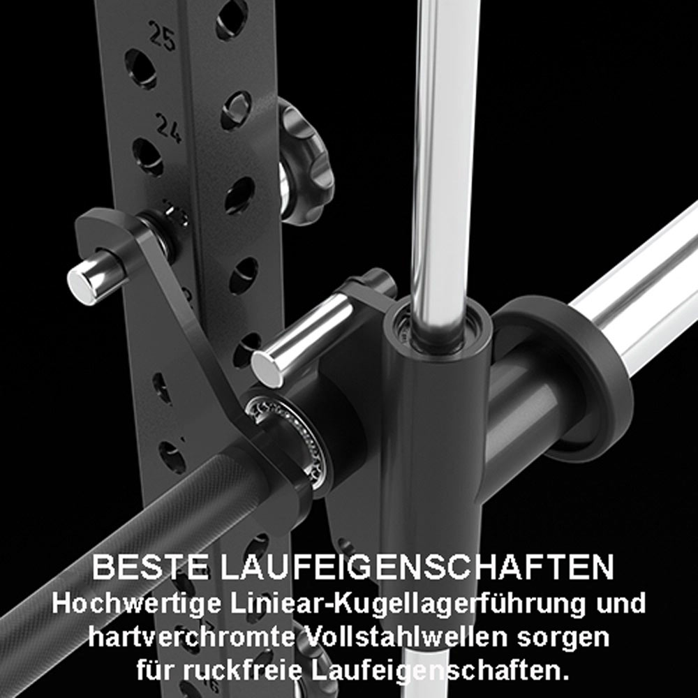 Mit der ATX® Multipresse-Option verwandelst du dein Power Rack PRX-640 oder PRX-660 in eine vollwertige Smith Machine. Dank hochwertiger Komponenten wie Linear-Kugellagerführung, massiven Vollstahlwellen und sicherer Arretierbolzen wird dein Rack zur multifunktionalen Trainingsstation für druck- und zugbasierte Übungen auf höchstem Niveau.