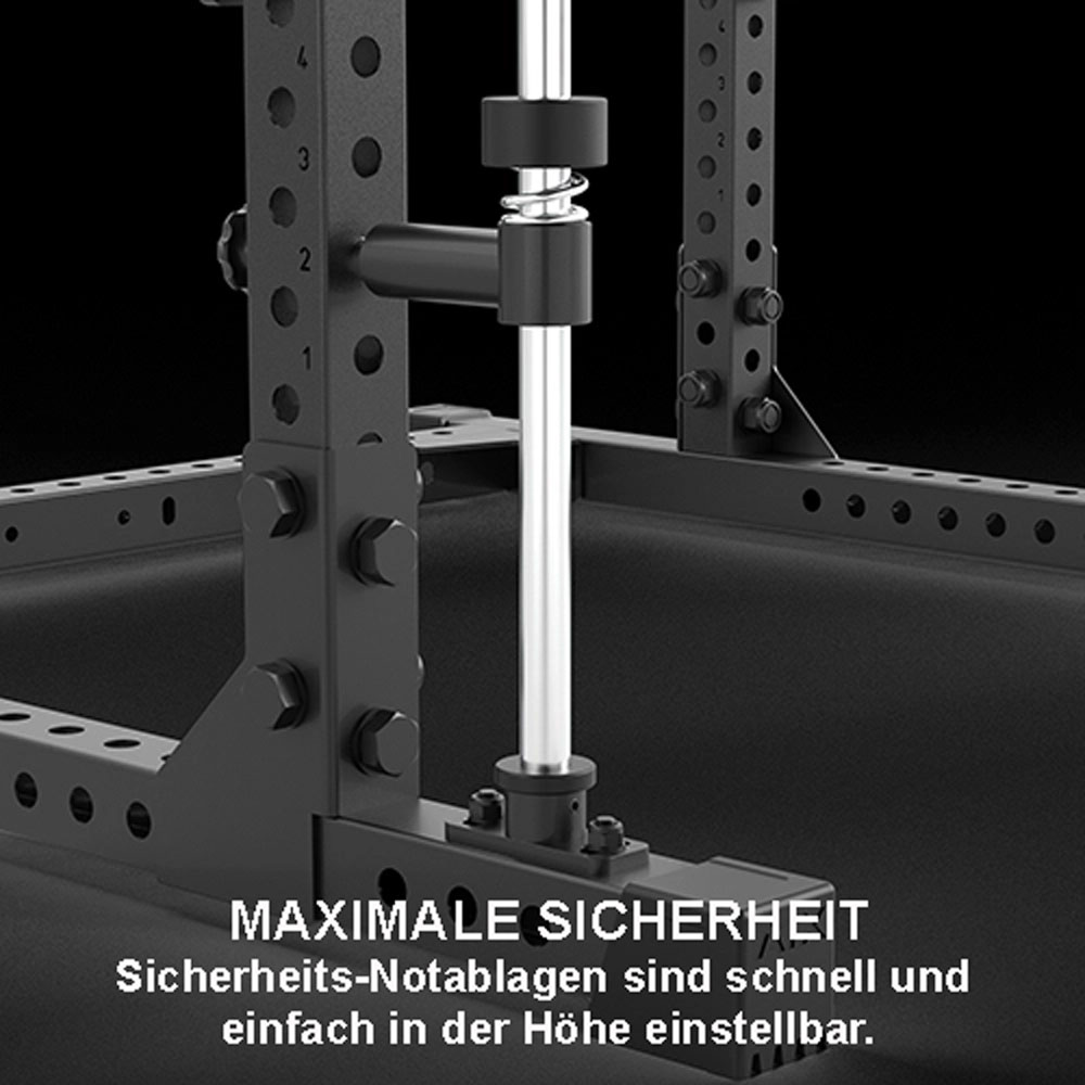 Sicheres Training durch 6 schnell einstellbare Ablagebolzen & Notablagen