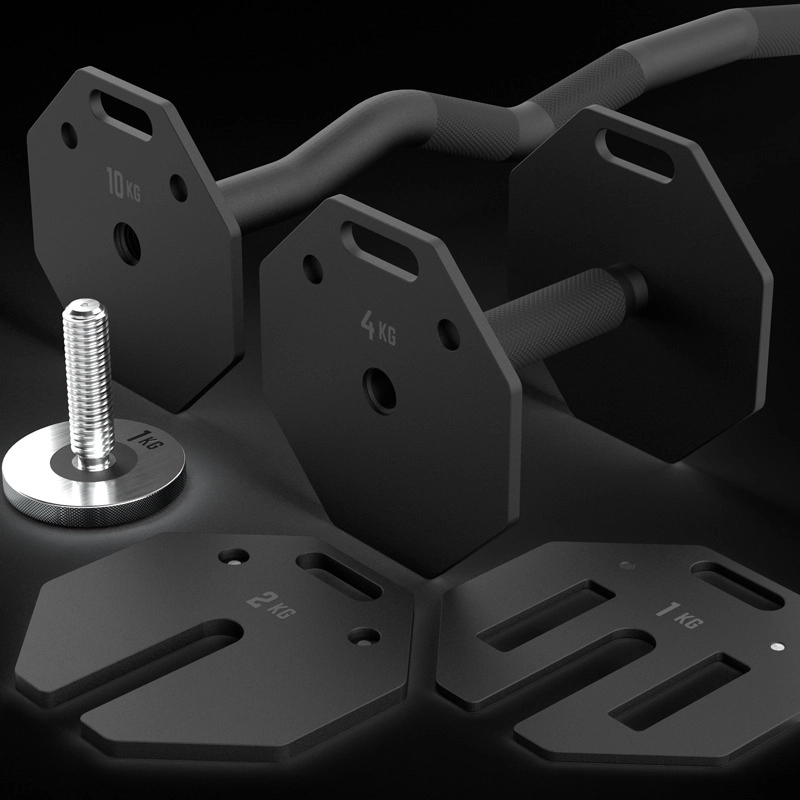 Modulares System - mit weiteren Gewichten, einer SZ-Hantelstange und optionalem Zubehör erweiterbar.