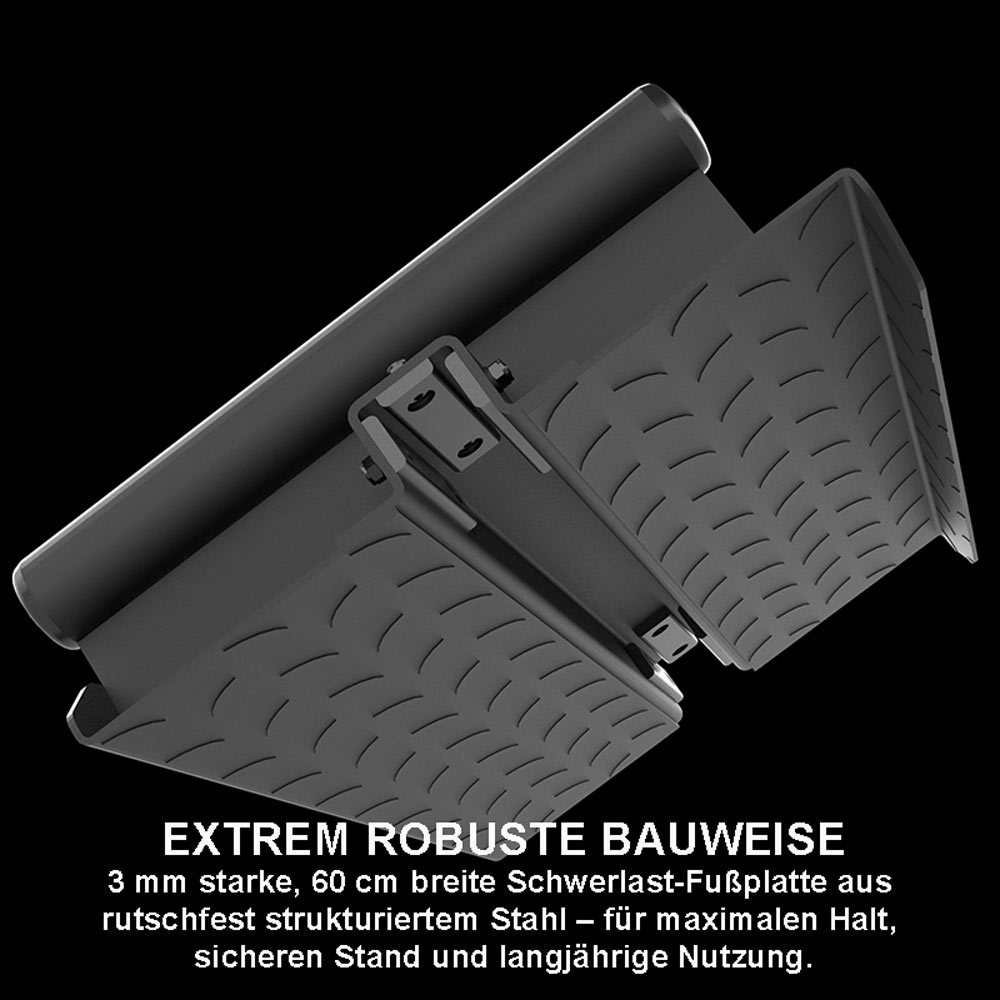 Massive Schwerlast-Fußplatte (3 mm Stahl) mit rutschhemmender Struktur für maximale Sicherheit