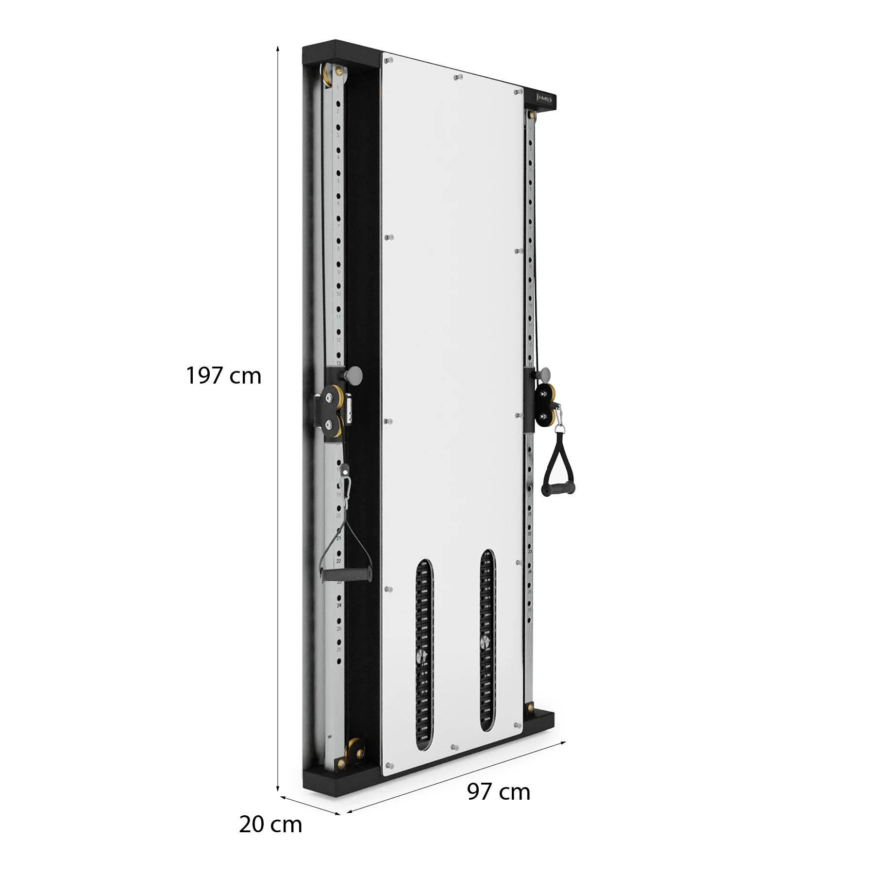 Die BS302 von HMS ist eine moderne, platzsparende und zugleich leistungsstarke Wandzugstation für anspruchsvolles Krafttraining. Mit zwei unabhängigen Gewichtsblöcken und einem doppelten Seilzugsystem ermöglicht sie ein vielseitiges Ganzkörpertraining auf professionellem Studio-Niveau.