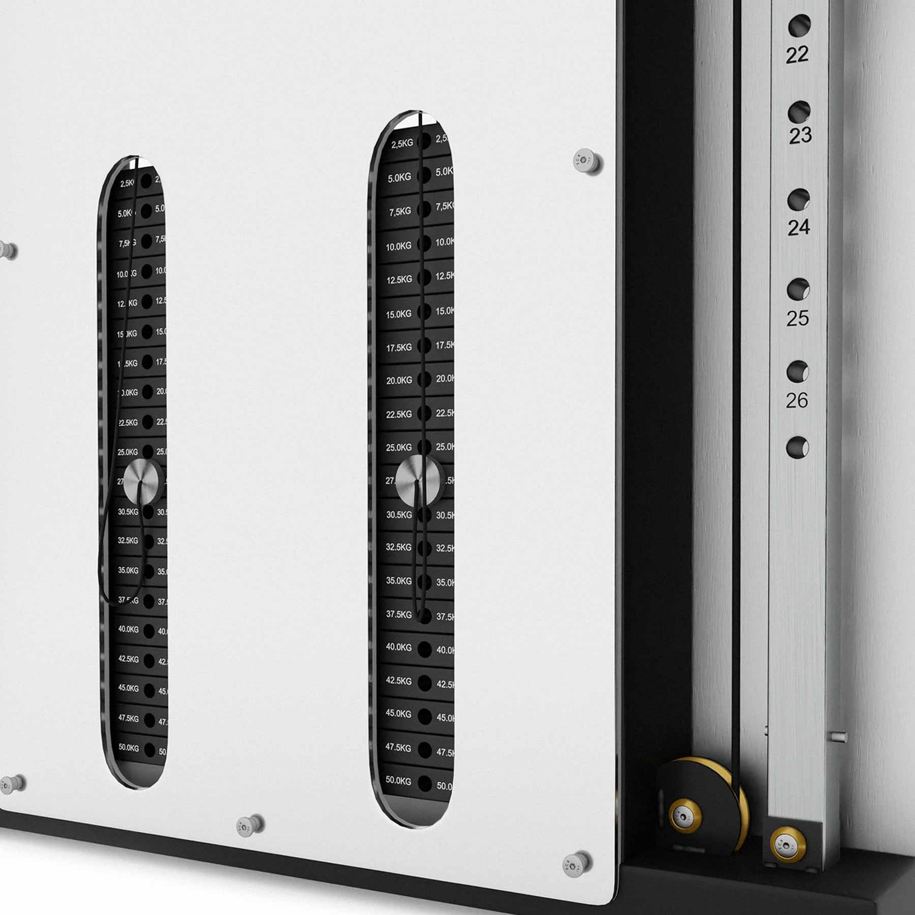 Dank der 26-stufigen Höhenverstellung der Stahlseile lässt sich die Zugposition präzise an Körpergröße, Übungsausführung und Trainingsziel anpassen. Die hochwertigen Seile laufen gleichmäßig und ruhig, was einen sauberen Bewegungsablauf und ein sicheres Trainingsgefühl gewährleistet. Die im Lieferumfang enthaltenen Griffe sind ergonomisch geformt, rutschfest und über Karabiner schnell wechselbar.