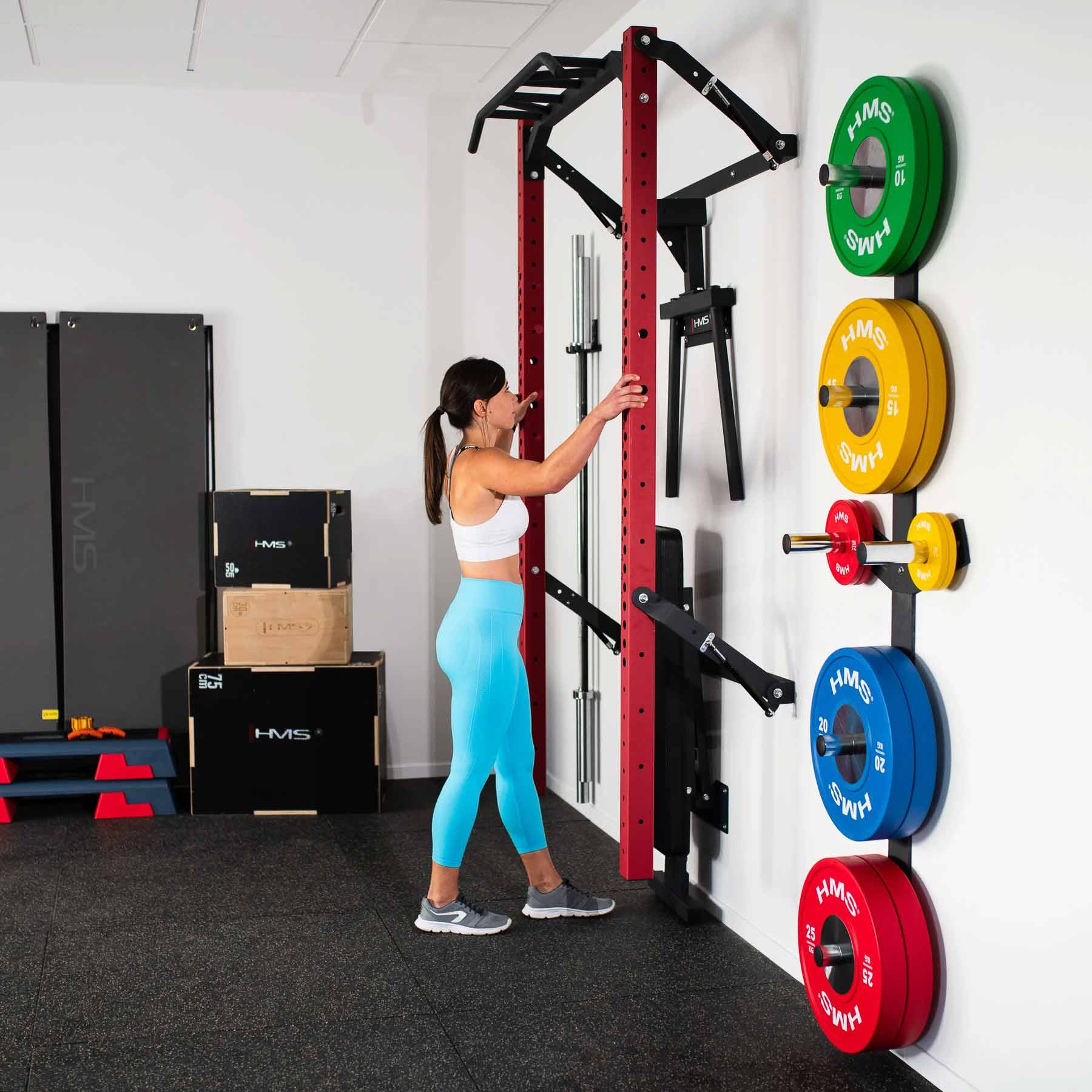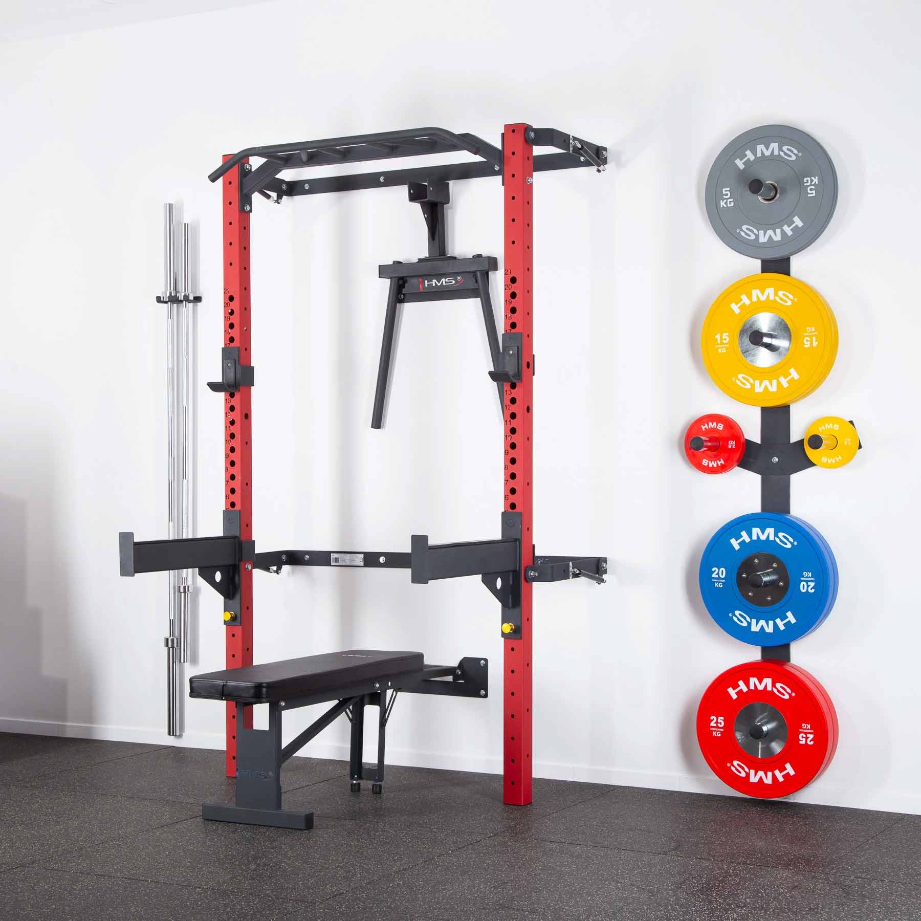 Das HMS Fold Back Wall Rack KLT22 in Rot ist eine leistungsstarke Komplettlösung für intensives Krafttraining im Homegym. Die klappbare Wandkonstruktion, die hohe Belastbarkeit und das umfangreiche Zubehörpaket bieten maximale Trainingsvielfalt bei minimalem Platzbedarf. Ideal für alle, die ein funktionales, sicheres und optisch auffälliges Trainingssystem für zu Hause suchen 💪