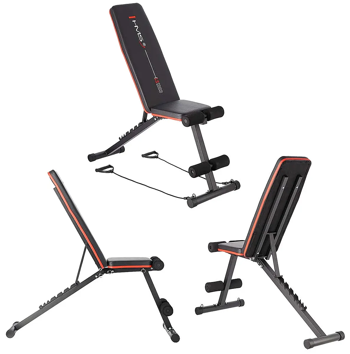 HMS LS1203 – Multifunktionale, klappbare Trainingsbank mit Expandern für dein Homegym 💪🏠✨