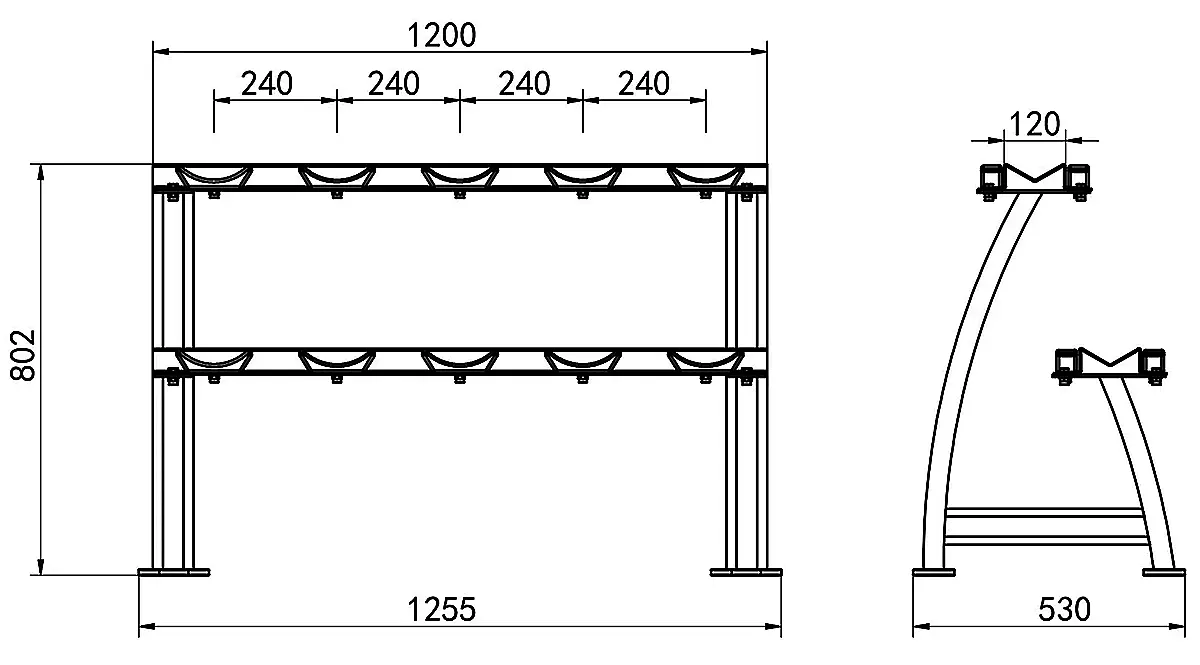 | Modell | STR38 – Kurzhantelständer mit Halbschalen |