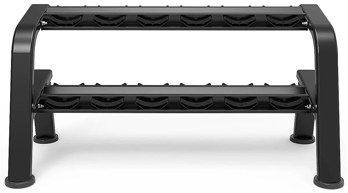 Zwei Ebenen – maximale Ordnung & leichter ZugriffDer STR48 verfügt über zwei großzügige Ablagen, die bis zu 12 Kurzhanteln sicher aufnehmen können.