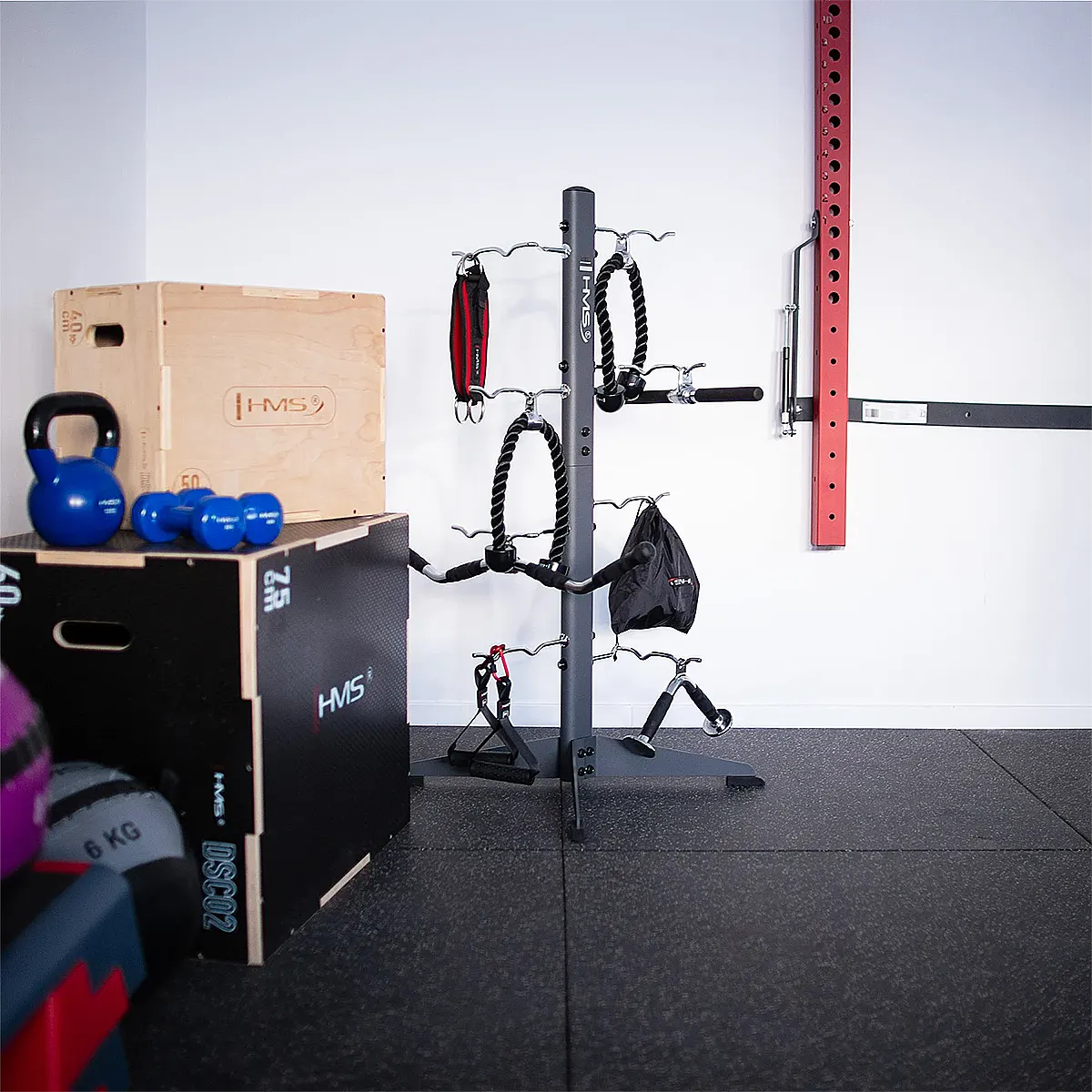 Der HMS STR33 Multi Rack Griffständer ist die ideale Lösung, um Trainingszubehör sicher, platzsparend und jederzeit griffbereit zu lagern. Egal ob im Fitnessstudio, Verein oder Homegym – dieser robuste Ständer sorgt für Ordnung und schnellen Zugriff auf dein komplettes Equipment.