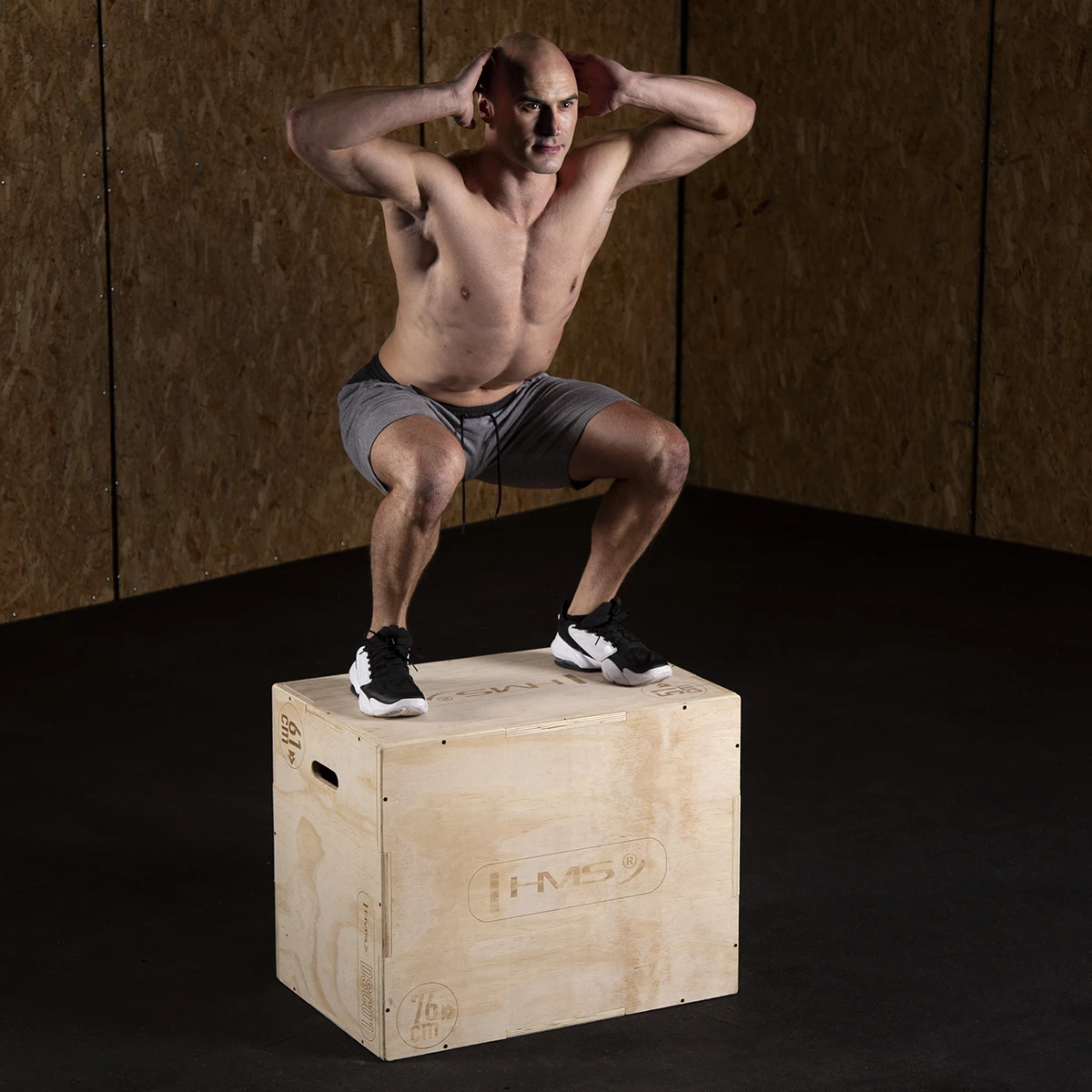 Die Plyobox DSC01 von HMS ist ein vielseitiger Trainingskasten aus massivem Holz, der sich ideal für plyometrisches Training, Sprungkraftübungen, Functional Training und Athletiktraining eignet. Durch einfaches Drehen des Kastens stehen drei unterschiedliche Höhen zur Verfügung, sodass das Training optimal an das Leistungsniveau des Nutzers angepasst werden kann.