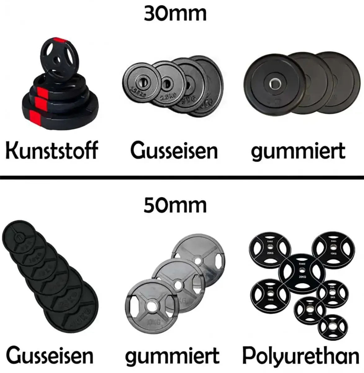 🪨 50 kg Hantelscheiben-Sets zur Gewichtserhöhung:1× 20 kg, 1× 15 kg, 1× 10 kg, 1× 5 kg